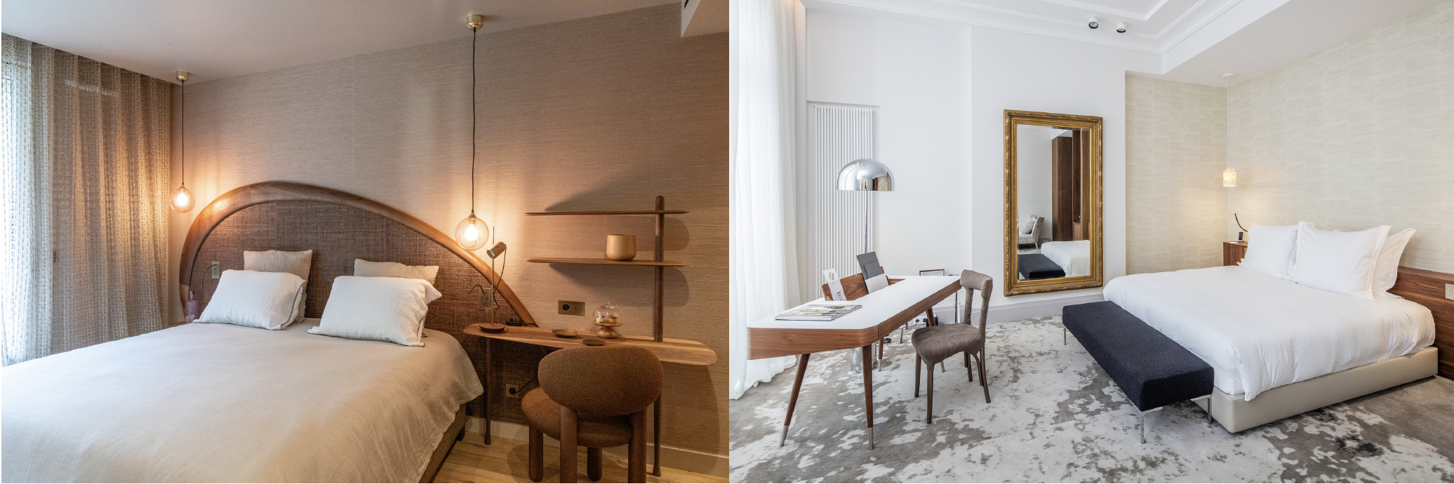 Chaque espace a été pensé comme une invitation à l’évasion. Les chambres, toutes uniques, possèdent leur propre identité, leur univers, leur narration. Aucune ne se ressemble, et chacune propose une atmosphère particulière, où l’art, les matières, les couleurs et les objets dialoguent avec subtilité. L’art est omniprésent, jamais décoratif, toujours émotionnel, jusque dans les moindres détails.